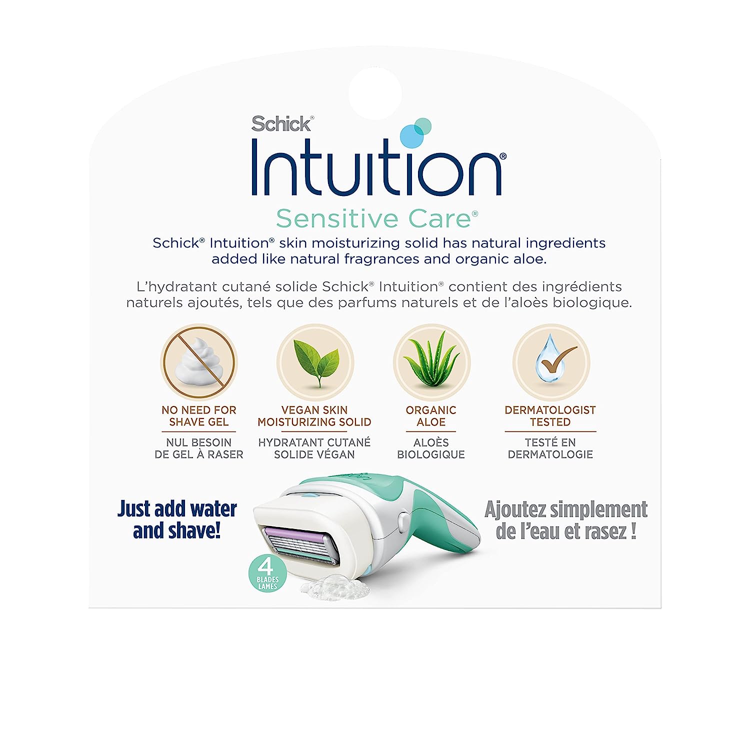 - Schick Intuition Sensitive Care Razor refill pack includes 6 razor blade cartridges